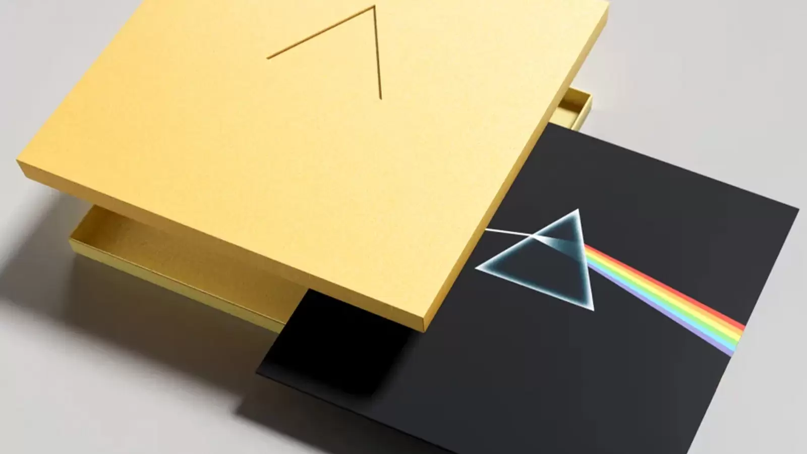 Eles vêm uma caixa preta quadrada com um elemento gráfico simples: um triângulo equilátero recortado no centro. O símbolo capta a essência mais básica do prisma original, um processo de refração da obra que faz parte do conceito do projeto.