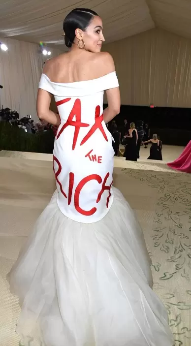 As aparências no MET Gala muitas vezes funcionam como anúncios ambulantes para marcas de moda, com celebridades transformadas e toda espécie de observações e julgamentos, gerando tanto memes quanto mensagens políticas, como o vestido de "Tax the Rich" de Alexandria Ocasio-Cortez.