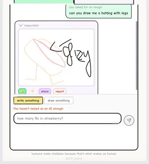 Quando você entra no site pela primeira vez, recebe dois créditos gratuitos para pedir a outro usuário que escreva ou desenhe alguma coisa. Depois que esses créditos acabam, é possível ganhar novos “interpretando uma IA”, ou seja, respondendo perguntas e fazendo desenhos que outros usuários solicitaram dentro de um limite de tempo.
