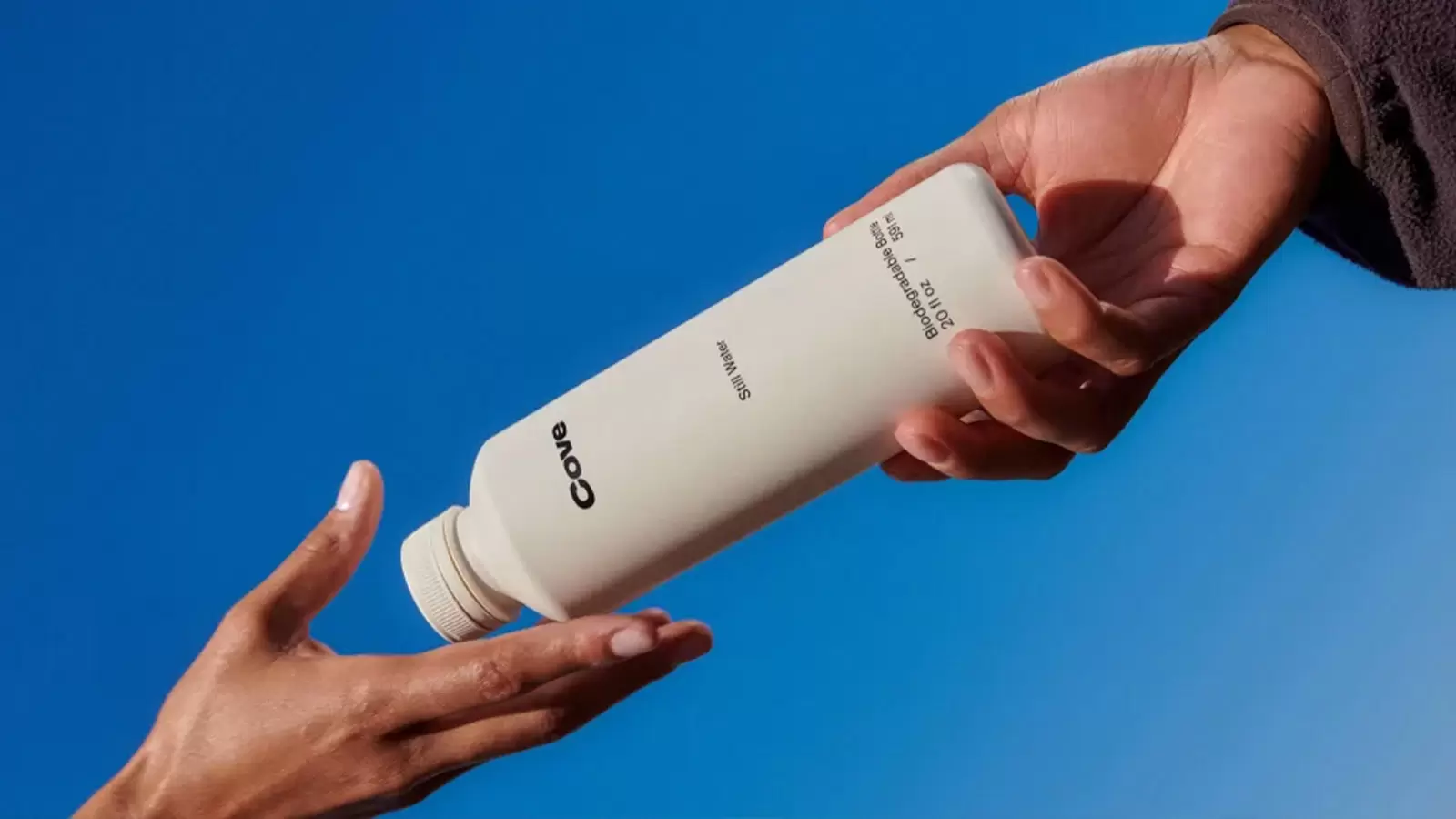 Uma startup chamada Cove criou uma garrafinha de água que parece ser feita de plástico comum. Só que ela é a primeira embalagem desse tipo a ser produzida a partir de uma mistura de PHA, um tipo de polímero de base biológica projetado para se decompor quando compostado – ou, na pior das hipóteses, se for parar no oceano.