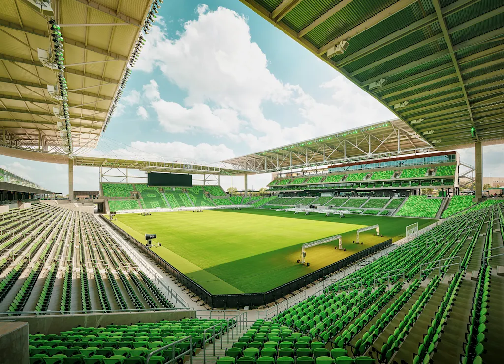 Nos Estados Unidos, em Austin, outro estádio projetado pela Gensler foi estrategicamente pensado para manter o maior número possível de espectadores na sombra durante os jogos. O design aproveita a ventilação natural e os tradicionais assentos de plástico foram substituídos por cadeiras de malha, que ajudam a manter o corpo mais fresco.