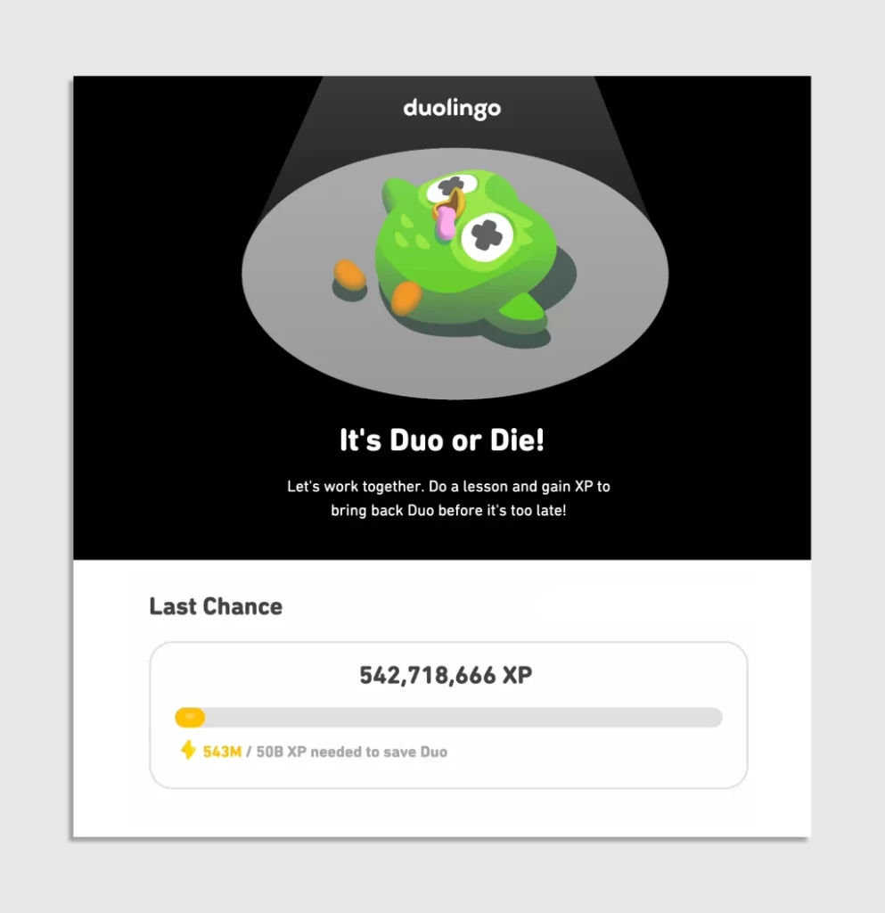 Com o aval de Zaria Parvez, a ideia foi levada ao CEO, Luis von Ahn. Ele não só aprovou como deu o sinal verde: “acabem com ele”. O anúncio foi feito com um comunicado sóbrio, em preto e branco: “Duo, também conhecida como a coruja do Duolingo, morreu.”